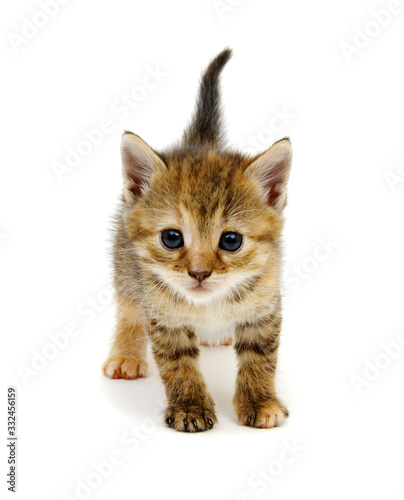 © Alekss, Obraz premium Little beautiful funny kitten on white