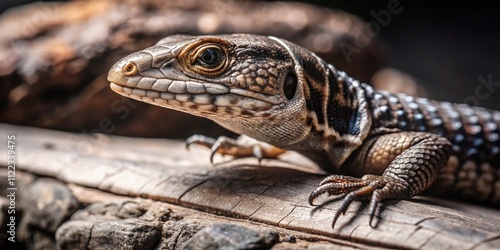 © Natalia, Naklejka premium little beautiful lizard on a wooden texture. macro shot. close-up.