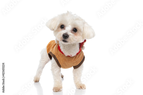 Obraz premium little bichon dog wearing a brown cloth