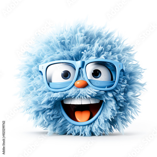 Fototapeta premium Little Blue Cartoon Monster with Glasses