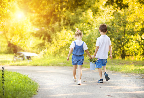 © Halfpoint, Fototapeta premium Little boy and girl on a walk