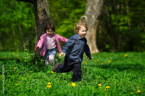 © Aliaksei Lasevich, Fototapeta premium little boy and girl running away