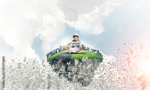 © adam121, Naklejka premium Little boy keeping mind conscious.