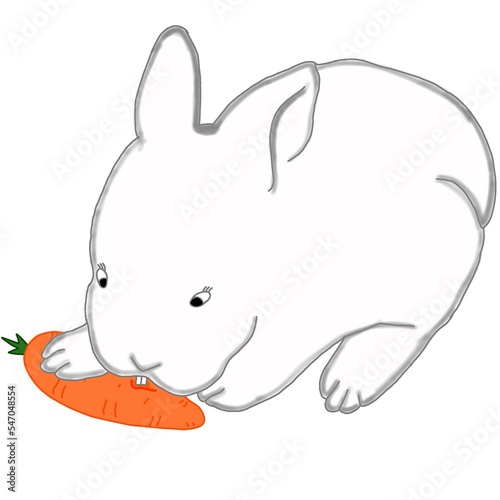 © Parichat, Fototapeta premium Little bunny and delicious carrots