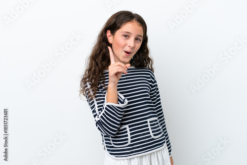 Fototapeta premium Little caucasian girl isolated on white background intending to realizes the solution while lifting a finger up
