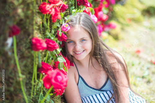 © Volodymyr, Fototapeta premium Little child with flowers, spring