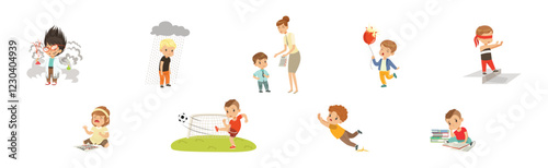 Fototapeta premium Little Children Character Failure and Mistake Vector Set
