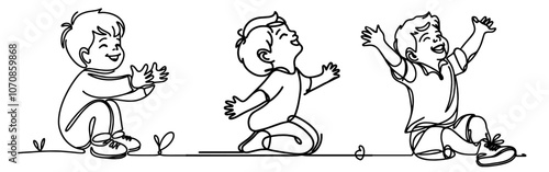 Fototapeta premium little children joyful happy monoline vector, oneline line art style