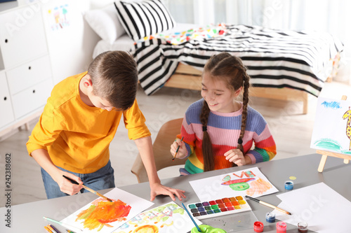 Fototapeta premium Little children painting picture at table indoors