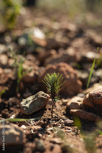 Obraz premium Little coniferous growing on soil