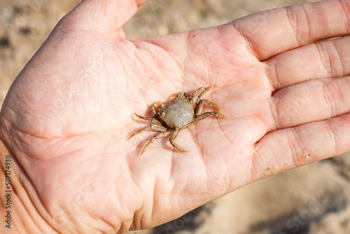 Obraz premium Little crab on the palm