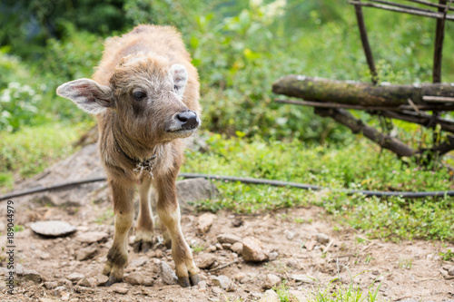 © karelian, Fototapeta premium little cute calf with big ears; young buffalo