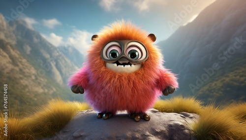 Fototapeta premium little cute fluffy monster