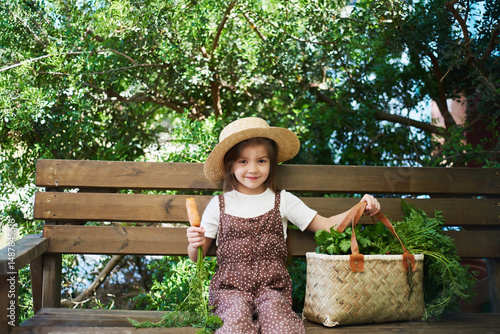 Obraz premium little cute girl on a farm in summer
