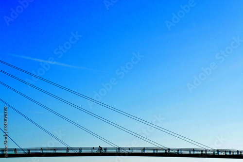 © Lumierman, Naklejka premium Little cyclist on a big bridge
