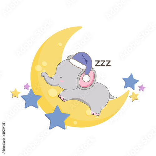 © miss[SIRI], Obraz premium Little elephant sleeping on the moon.