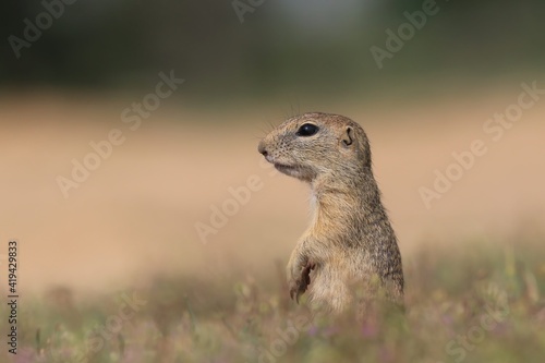 Fototapeta premium Little european ground squirrel sitting on the ground. (Spermophilus...