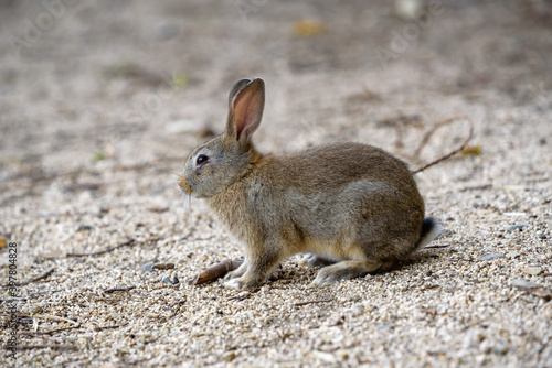 Fototapeta premium Little European rabbit, on the island of Ohkunoshima in Hiroshima Prefecture....