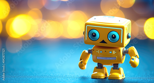 Fototapeta premium Little Explorer: A curious robot with glowing eyes is ready for new discoveries