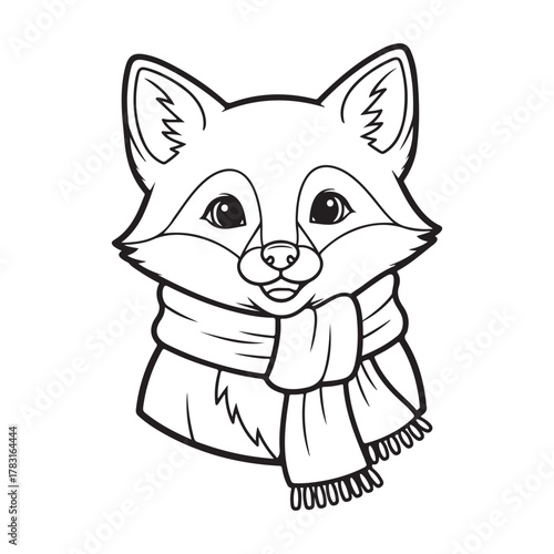 © Alo, Fototapeta premium Little fox wearing scarf coloring page