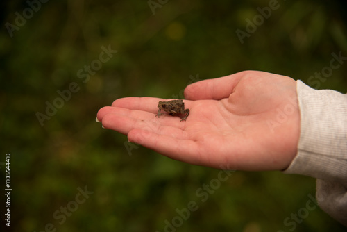 © Alena Petrachkova, Fototapeta premium Little Frog Sitting on Palm