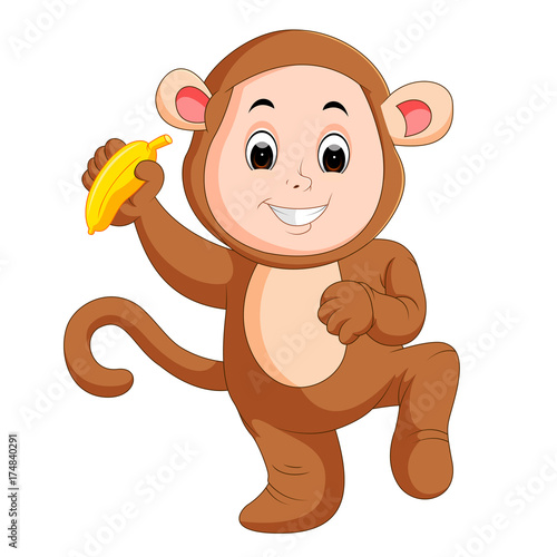 Fototapeta premium Little funny baby wearing monkey suit