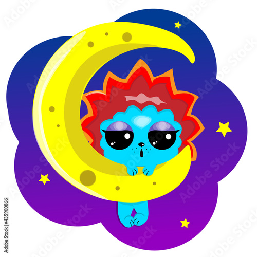 Fototapeta premium Little funny sleepy hedgehog on the moon