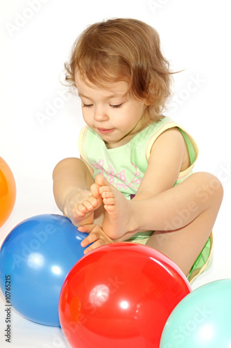 © Julia Mashkova, Obraz premium Little girl and balloons.