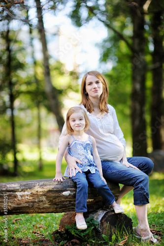 Fototapeta premium Little girl and her pregnant mother outdoors