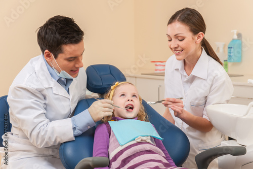 Obraz premium Little girl at dentist looking up and smiling.