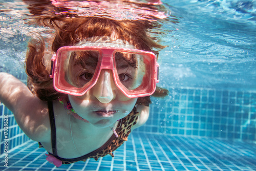 © inigocia, Fototapeta premium Little girl diving in a pool