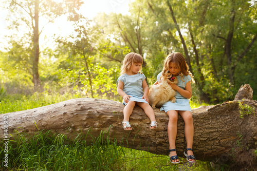 © Vagengeim, Fototapeta premium Little girl hugging Spitz
