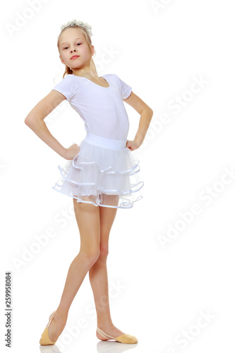 Naklejka premium Little girl in gymnastics leotard.