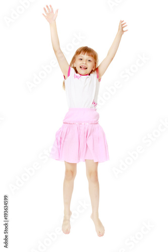© lotosfoto, Fototapeta premium Little girl is jumping.