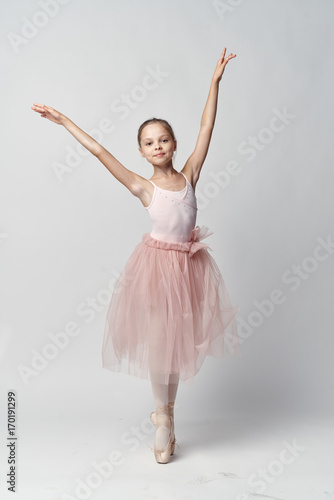 © SHOTPRIME STUDIO, Naklejka premium 1398907 Little girl on white background, ballerina, dancing