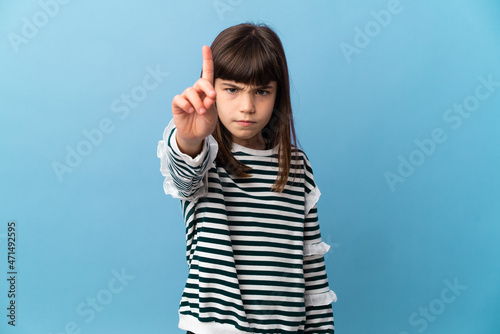 Fototapeta premium Little girl over isolated background counting one with serious expression
