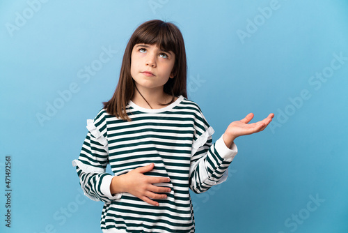 © luismolinero, Fototapeta premium Little girl over isolated background having doubts