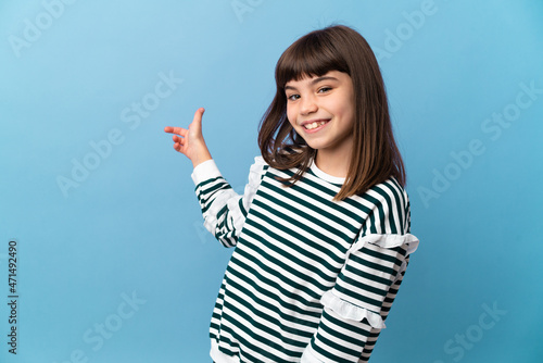 Fototapeta premium Little girl over isolated background pointing back