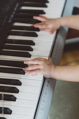 © olgalisa88, Fototapeta premium Little girl playing a synthesizer