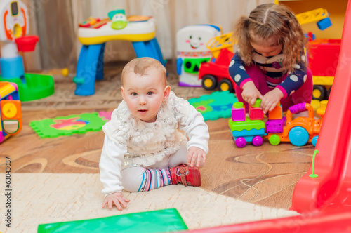 © capable97, Fototapeta premium Little girl playing with toys in the playroom