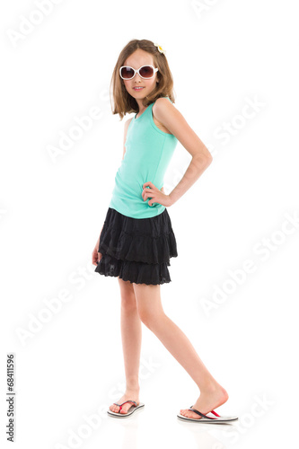 Fototapeta premium Little girl posing in black mini dress.