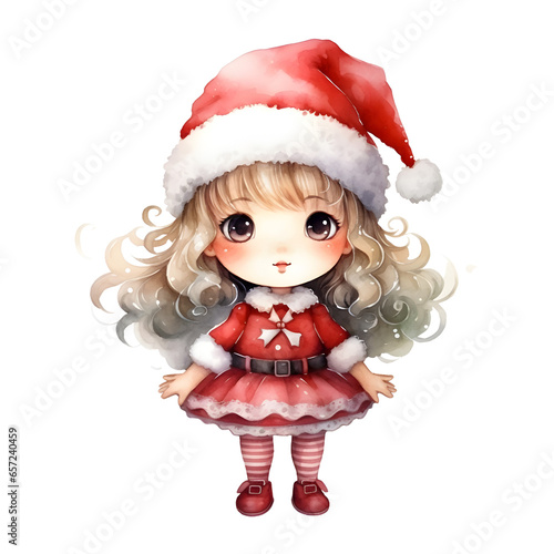 © Janie, Fototapeta premium little girl wearing Christmas costume. watercolor illustration