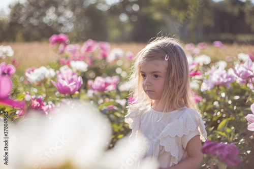 © Julija, Fototapeta premium little girl with flowers in the garden