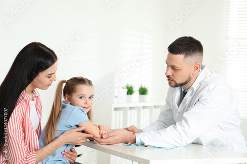 Fototapeta premium Little girl with mother visiting orthopedist at clinic