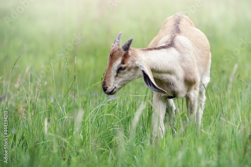 © Linas T, Fototapeta premium Little goatling in a green spring meadow