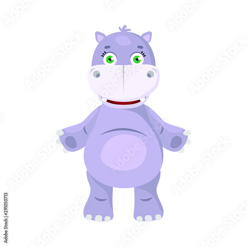 Fototapeta premium Little hippo Isolated on a white dackground. Cartoon hero, flat design....