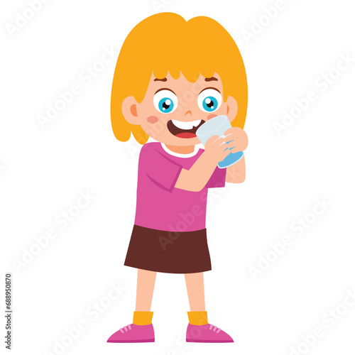 © Yumagema, Fototapeta premium Little Kid drinking water. Little Girl standing enjoy drinking beverage. Children quenching thirst Activity Isolated Element Objects. Flat Style Icon Vector Illustration