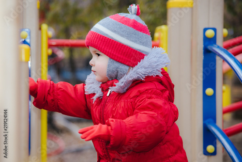 © johnalexandr, Obraz premium little kid is playing on the playground in the park