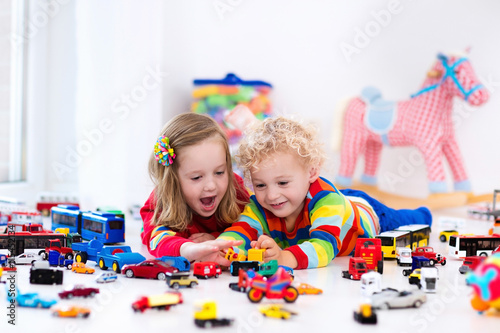 © famveldman, Fototapeta premium Little kids playing with toy cars