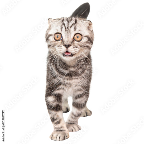 Obraz premium Little kitten Scottish fold cat isolated on white background, purebred...